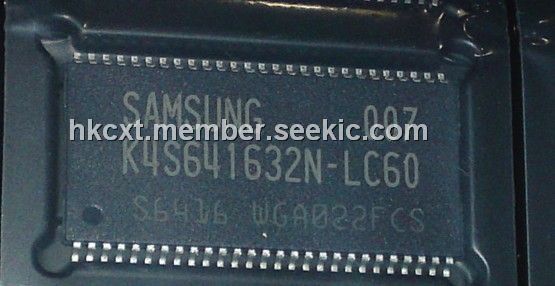 K4S641632N-LC60 features:(1)JEDEC standard 3.3V power supply; (2)LVTTL compatible with multiplexed address; (3)Four banks operation; (4)All inputs are sampled at the positive going edge of the system clock; (5)Burst read single-bit write operation; (6)DQM (x8) & L(U)DQM (x16) for masking; (7)Auto & self refresh; (8)64ms refresh period (4K cycle); (9)Pb-free and Halogen-free Package; (10)RoHS compliant; (11)Support Industrial Temp (-40 to 85℃).